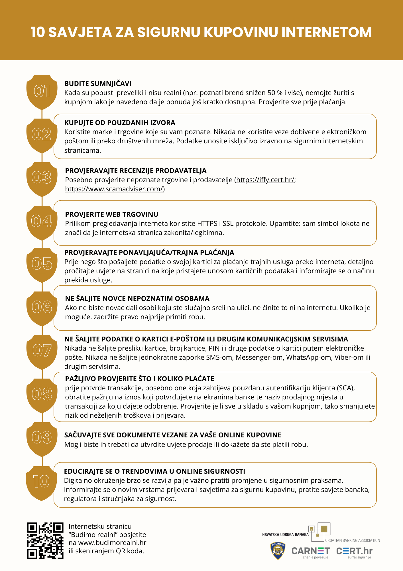 Detaljniji savjeti za sigurnu online kupovinu, ali i informacije o najčešćim vrstama online prijevara mogu se pronaći na mikrostranici kampanje www.budimorealni.hr.